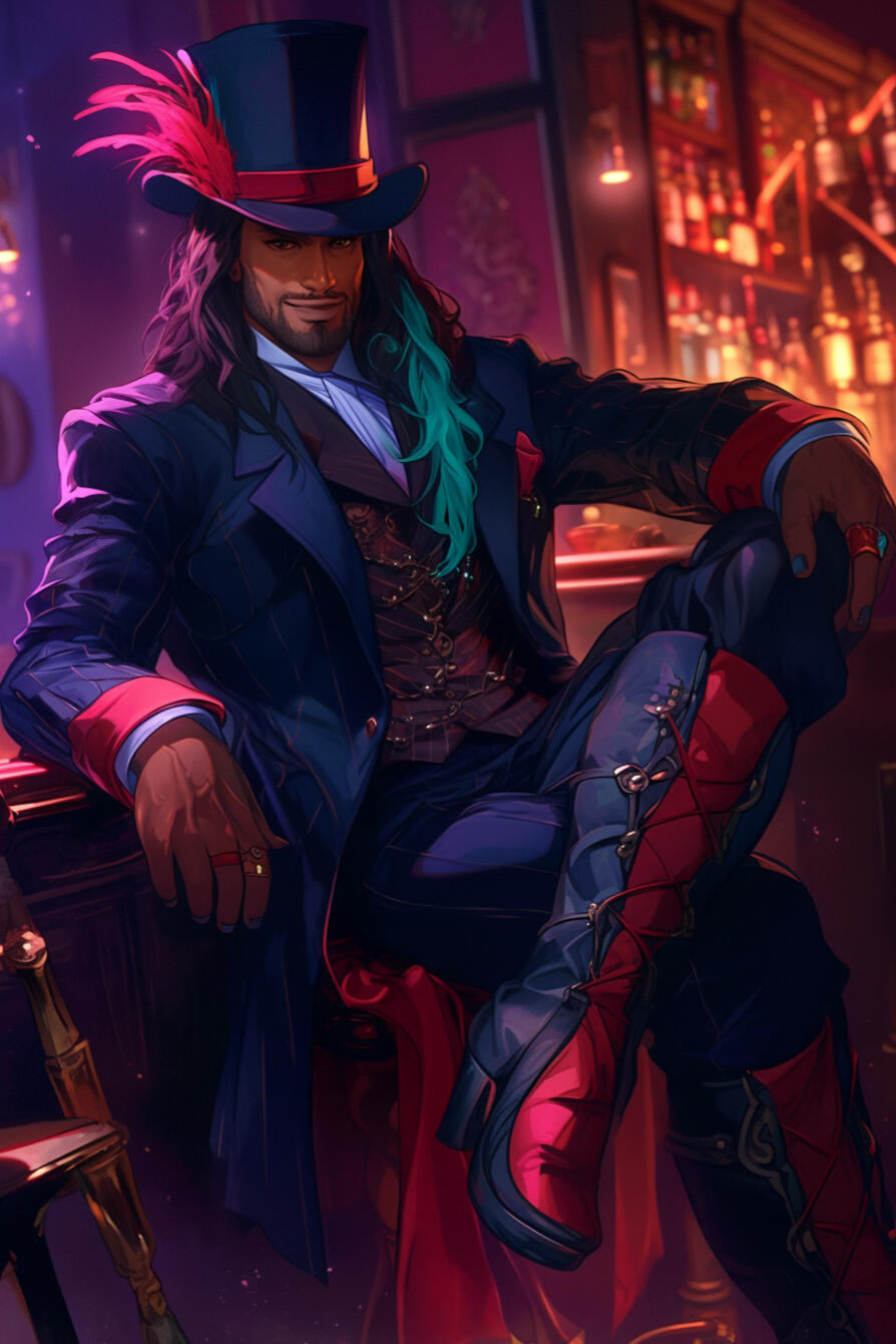 Oscar Romano was born in Harlem to a family steeped in the vibrant traditions of jazz and blues. His father was a jazz pianist, and his mother a gospel singer, their home always alive with the sound of music. From an early age, Oscar showed exceptional talent on the piano, his long fingers dancing effortlessly across the keys. By the time he was a teenager, he was performing in underground jazz clubs, where he earned a reputation for his commanding stage presence and smooth, velvety voice.In his 20s, Oscar’s career skyrocketed. He became a staple in New York’s live music scene, known for his ability to captivate audiences with his soulful performances. Whether he was belting out heartfelt ballads or tickling the ivories during an energetic jazz number, Oscar’s charisma was undeniable. His signature look—sharp suits, dramatic stagewear, and his now-famous teal hair streak—cemented his image as a larger-than-life performer.However, the grind of constant touring and the pressures of the industry took their toll. By his early 30s, Oscar decided to step back from the spotlight and focus on creating a space where others could shine. Drawing inspiration from the grand cabarets and speakeasies of the 1920s, he opened Ozzie’s. The club was envisioned as a sanctuary for performers, artists, and anyone seeking a space to express themselves freely, away from judgment or prejudice.While Ozzie’s gained fame as a cabaret club, Oscar’s commitment to inclusivity and liberation led to its evolution. Monthly kink and sex club nights became a cornerstone of the venue, designed to celebrate intimacy, self-expression, and exploration in a safe, consensual environment. Oscar believed that, much like music, sexuality was an art form—a deeply personal expression of identity and freedom.Though he dedicated himself to running the club, Oscar’s love for performing never faded. On special occasions, or when the mood struck him, he’d return to the stage at Ozzie’s. These rare performances were electrifying; whether playing jazz standards on the piano or delivering a sultry ballad, Oscar reminded everyone why he was once one of New York’s most celebrated performers. These moments also kept his connection to music alive, reaffirming his belief that the stage was a place of magic and transformation.
