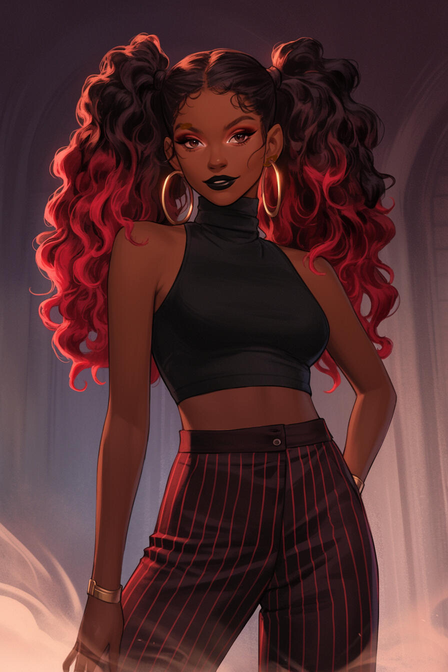 Velvette Williams was born and raised in London, where she developed a strong passion for fashion early on. Growing up in a city known for its unique style, she practiced her craft by designing custom pieces for friends and family, all while getting top grades in fashion design at school. Her talent drew the attention of fashion leaders, and by the time she was 20, she won a scholarship to a top fashion school in the U.S. There, her bold and innovative designs quickly set her apart from other students. However, her time at school was also marked by her arrogance and critical attitude, which made it hard for her to get along with her classmates. Despite this, her talent was clear.Velvette’s career changed significantly when she met Vox through Valentino, an eccentric flamboyant man who due to his huge size required custom outfits to match his extravagant style. Their collaboration was successful because Valentino’s unique sense of style matched Velvette’s daring designs. Through this partnership, Velvette started managing Vox’s social media and became heavily involved in the VoxTek brand, handling its online presence with the same skill she applied to fashion. This led to Vox letting her set up her own fashion studio within V Tower.As both VoxTek’s social media manager and a leading fashion designer, Velvette balances these two roles. Her ability to mix high fashion with modern social media strategies has made her vital to Vox and helped build her own brand. She also launched her signature perfume, “Love Potion,” which became a symbol of her glamorous image. Despite her success, Velvette is known for being harsh with her staff. Her high standards and critical nature make her a difficult boss, leading to conflicts within her team.