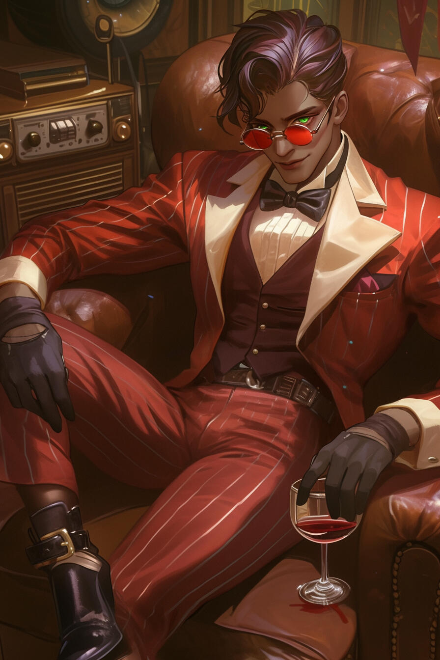Alastor was born and raised in a small, tight-knit community in rural Louisiana. From a young age, he was captivated by the charm of old-time radio shows, a fascination encouraged by his doting mother, Claudette. She was his world, a pillar of love and support, and the person who fueled his passion for performance and storytelling. Claudette's sudden death, due to a tragic accident, left Alastor devastated. Unable to cope with the loss and the memories haunting his childhood home, he decided to leave Louisiana behind.Alastor moved to New York City, seeking anonymity in the bustling metropolis and hoping to reinvent himself. He quickly found work at a small, underground radio station, where his deep, charismatic voice and vintage style set him apart. His late-night show, "The Midnight Menagerie" became a cult hit among night owls, insomniacs, and the city's loneliest souls. Alastor weaves enchanting tales, mixes old jazz tunes with eerie soundscapes, and offers "advice" to his listeners, all under the guise of a smooth-talking Southern gentleman.Beneath his charming exterior, Alastor harbors a dark and twisted hunger. The move to New York wasn’t just an escape from his past; it was an opportunity to indulge in his cannibalistic urges in a city where people often go missing without a trace. He uses his radio show as a tool to identify potential victims—lonely, vulnerable people who are drawn to his magnetic personality. Through subtle manipulation, he lures them into dangerous situations, and when the time is right, he strikes.